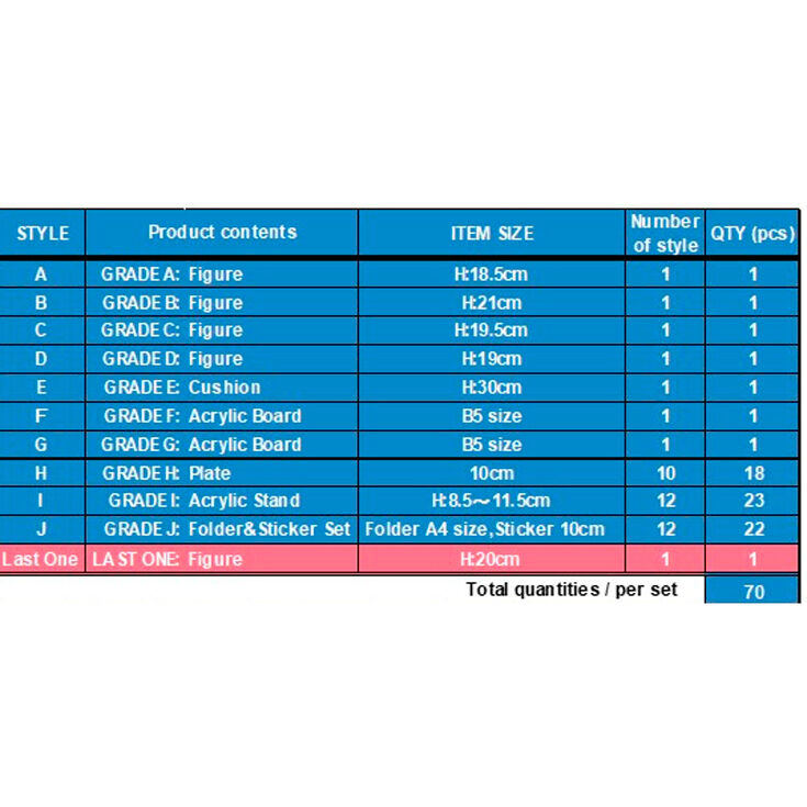Japanese lottery with Sakamoto Days products. It contains 70 products and their corresponding 70 surprise tickets to exchange them for the prizes obtained. In addition, the last ticket has an extra prize added to the prize of the letter that comes out. This means that when there are only a few tickets left, your customers will buy all the remaining tickets in order to win the special prize. This figure cannot be obtained in any other way.